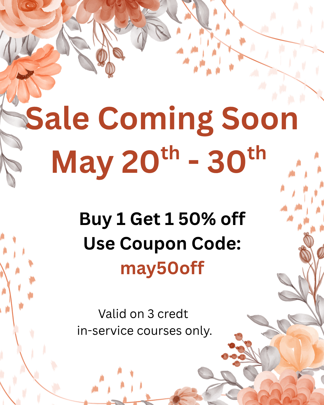 Please note: No refunds are available on any In service or Graduate courses once you register. You can switch courses if need be within the first two weeks of your registration.
